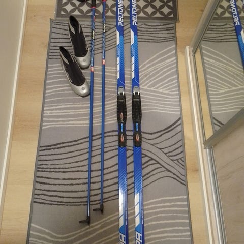 Perinteisen sukset. Olleet jonkun aikaa varastossa nii pohjissa hieman likaa muuten hyvässä kunnossa. Vähän käytetyt sukset. Monot myös hyvässä kunnossa, itse olen käyttänyt ja menee hyvin jos jalan koko 39. Monot pientä kokoa. Monojen koko 40 2/3. Myydään pakettina sukset, sauvat ja monot.