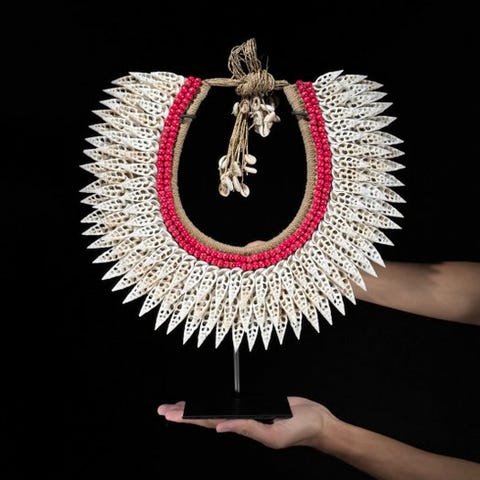 Seria alkuperäiskansojen kaulakoruja, jotka on tehty nassa-kivistä. TOLAÏ-kansa, Uusi Britannia, Papua-Uusi-Guinea. Kaulakorut sisältävät satoja pieniä nassa-kiviä. Merkittävää on, että lähes kaikki niistä ovat saman kokoisia, mikä antaa niille erittäin sileän, primitiivisen muodon.Arviolta mitat - mukaan lukien jalustat.Kaulakoru 1: Korkeus 66 cm Leveys 40 cmKaulakoru 2: Korkeus 42 cm, leveys 30 cm.Vastuuvapautukset:Yksi tai useampi kuva esittää tyyliteltyä esinettä. Tarkat tiedot myytävästä esineestä löytyvät muista kuvista. Tyylitellyssä kuvassa olevat esineet eivät sisälly myyntiin.Mainittu paino sisältää pakkausmateriaalin.LähetysKohde lähetetään seurantanumerolla DHL Parcelin, DPD:n tai postNlin kautta. Seuranta päivittyy Catawiki-luettelossasi, kun pakettisi on jätetty postiin.Ole hyvä ja tarkista säännöllisesti välttääksesi pakettisi palautumisen meille, jolloin ostaja vastaa toisen lähetyksen toimituskuluista.Seurantaan Espanjaan ja Portugaliin käytä tätä linkkiä ja lisää Catawiki-erästäsi saatu seurantanumero.https://clientesparcel.dhl.es/LiveTracking/HomeME EMME YHDISTÄ TOIMITUKSIA!!!Jos sinulla on kysyttävää paketistasi, ota meihin yhteyttä Catawiki-viestipalvelun kautta. Pyrimme vastaamaan kolmessa työpäivässä.