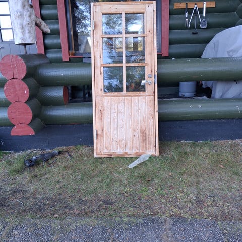 Käytetty Väliovi Karmeilla. Karmi korkeus 204cm, leveys 86cm. Lehden kätisyys oikea. Vähällä käytöllä ollut, varastopölyä ja likaa. Karmeissa joitain naarmuja. Saranaruuvi holkit ovi lehteen puuttuu. Ovilehdessä n. 1cm kaarevuus.
