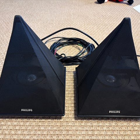 Tanskalaiset lattiakaiuttinet korkeus 52cm, leveys 30cm ja syvyys 21cm. Hyvin toimivat vanhat kaiuttimet.
