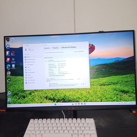 Näytön mukana tuli vain HDMI-johto, mutta mukaan saa sijaan DisplayPort-johdon jos siitä on enemmän hyötyä. Alkuperäinen pakkaus myös tallessa.