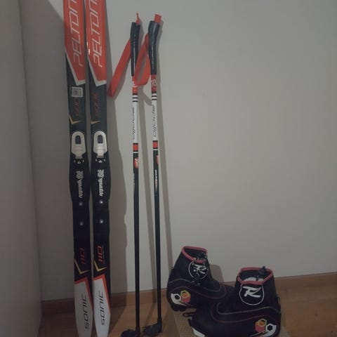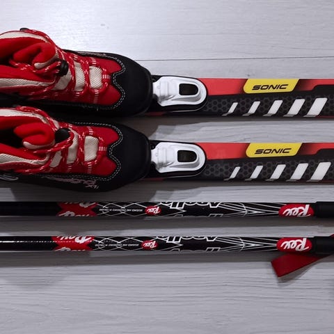 Sauvat 80cm. Side nnn. Monoja löytyy 28-31 väliltä. Hyvä kuntoinen setti pikkuiselle hiihtäjälle.