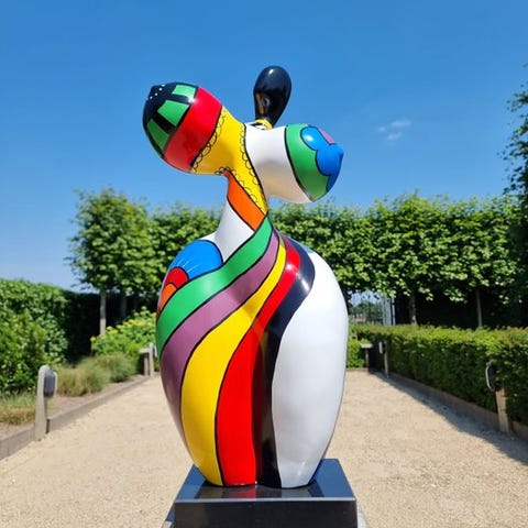 Upea koristeellinen veistos pop art -naisesta. Moderni kosketus sisustukseesi. Black and gold.Tämän erityisen taideteoksen mitat ovat seuraavat:Korkeus: 33 cmPituus: 12 cmKaikki tuotteemme toimitetaan hyvin pakattuina ja vakuutettuina.