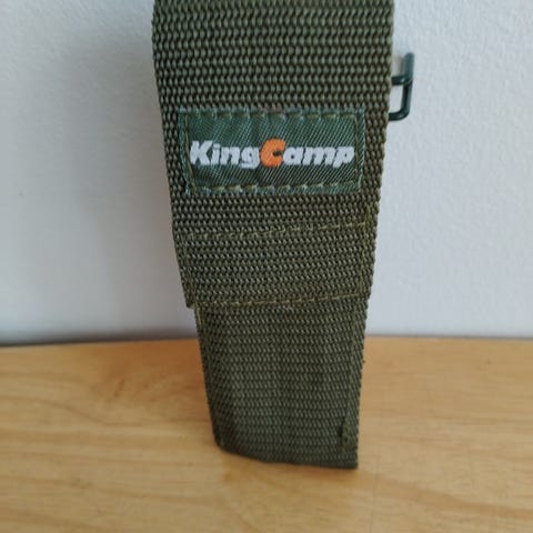 pihdit, veitsi, sahanterä, pullon- ja tölkinavaaja, talttapääruuvimeisseli. Lisäksi vyökotelo.