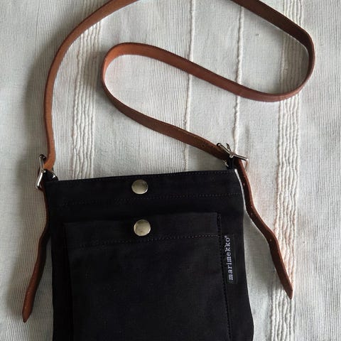 Myydään Pasi-olkalaukku, valmistaja Marimekko, väri musta. Leveys: 20cm, korkeus: 25 cm, kantokahvan pituus: 118 cm. Laukussa on säädettävä nahkainen olkahihna, painonappikiinnitys sekä yksi painonapilla suljettava tasku laukun ulkopuolella. Sisäpuolella on yksi vetoketjullinen tasku. Materiaali paksu puuvillamarkiisi + nahka.