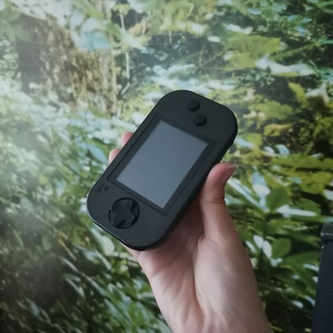 Muutaman kerran kokeiltu taskukonsoli. Ei vaadi paristoja, sisältää USB-C:llä ladattavan akun.