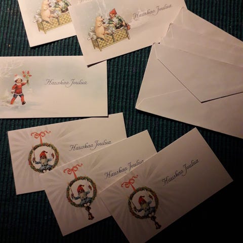 Mulle aikanaan postilta saadut joulukortit. Koko noin A5 toisella puolella myös merkki yhessä tai kahdessa ei ollut. Napapiirileimalla on myös muutama. Nouto tai lähetys 5.50e