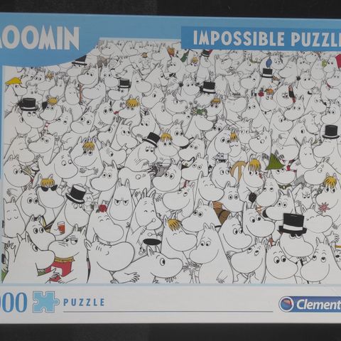 1000 palan Moomin -palapeli. 68 cm x 48 cm. Kerran melkein koottu (kuvassa tilanne), kaupassa hinta 20€.