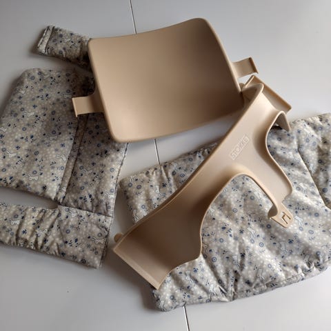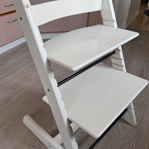 Myyntiin tarpeettomaksi jäänyt Stokke Tripp Trapp syöttötuoli. Vanhan mallinen puinen turvakaari nahkaremmillä. Tyylikäs tumman puun värinen.