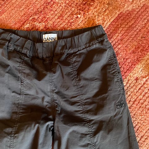 Gannin harmaat collegehousut koossa M. Pientä pintanukkaa paikoittain, muuten hyvässä kunnossa. Säilytyksessä rypystynyt. Loose malli.