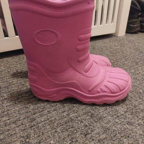 Lasten aappaat pojille, koko 38. Väri musta. Kengissä on korkea varsi ja paksu kuminen alaosa, joka suojaa kosteudelta. Yläosa on tekstiilimateriaalia. Pohja on kuvioitu paremman pidon takaamiseksi. Sopivat kylmään ja kosteaan säähän arki- ja ulkoilukäyttöön. Nimikoitu