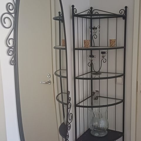 Musta, hyvässä kunnossa. Sisältää peilit taustalle ja pohjalle. Näyttävä.