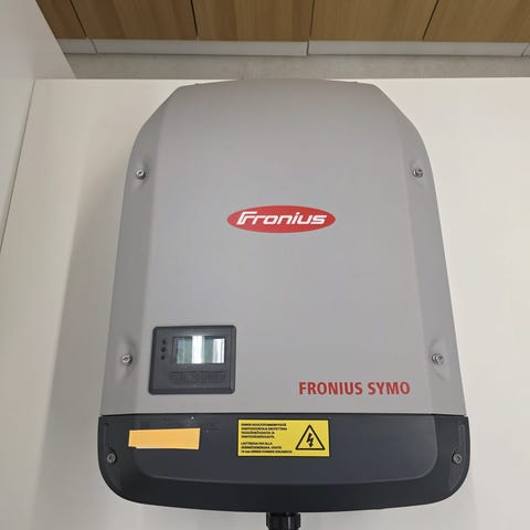 Laite on ollut paketista ulkona asennusvalmistelun yhteydessä, mutta sitä ei ole otettu käyttöön. Asiakas päätti vaihtaa kohteeseen hybridi-invertterin akustovarausta varten, joten tämä invertteri jäi ylimääräiseksi.