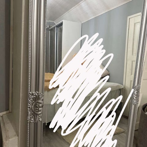 Jyskin nordborg valkoinen koristeltu peili, kultaisen sävyisillä koristeluilla.
