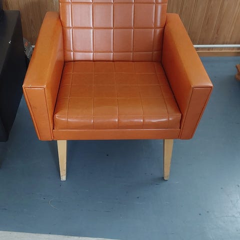 Varttuneemoaan ikään päässyt nojatuoli etsii uutta kotia.