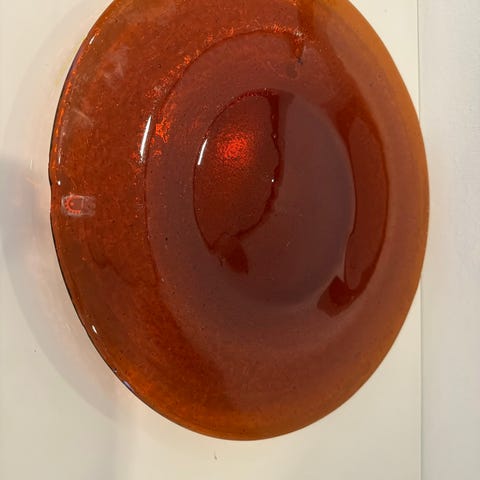 Humppilan lasin 1960-1970 luvulla tuotannossa ollut puristelasilautanen. Kirkasta lasia, orgaaninen ja uurrettu muoto. Sopii esimerkiksi tarjoiluun tai koristekäyttöön pöydällä tai tasolla. Halkaisija 28 cm ja korkeus 5 cm.