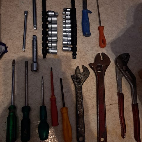 Pölyinen, mutta käyttämätön tuumakoon hylsysarja, kaikki hylsyt mukana
