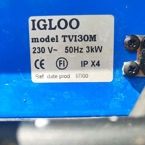Vanhasta ilmastoinnista käytetty toimivana purettu sähkömoottori tuuletin siivekkeillä. Propellin halkaisija n. 60cm. Moottorista mitattu vastukset wb-vb-ub liittimien väliltä 46 ohmia. Saa kysyä