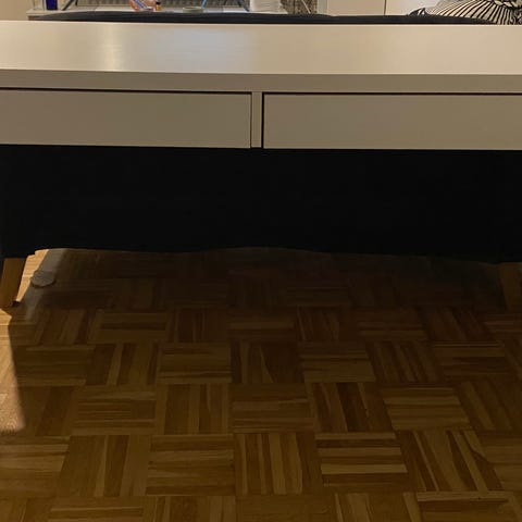 Hyvässä kunnossa oleva Ikean micke työpöytä. Johtokouru/-reikä läpivienneille.