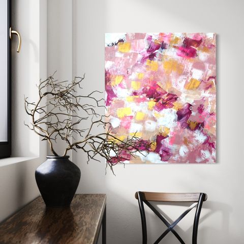 Semi-abstrakti maisema, semi-abstract painting, tilaustyötaulu, maisemamaalaus, peurataulu, kauristaulu, taidetta kotiin, taidemaalaus, käsin maalattu