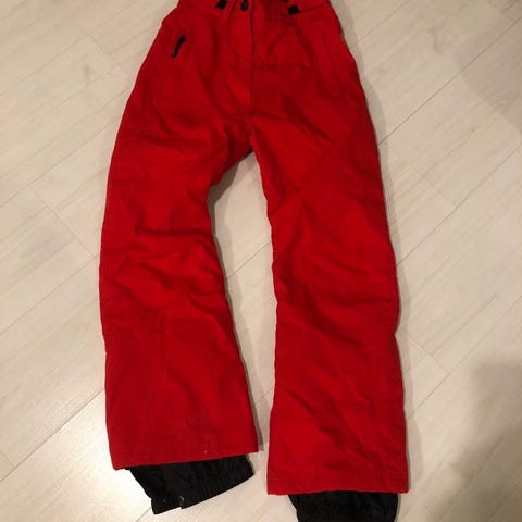 Crivit Sports lasten toppahousut tytöille. Koko 146/152, Väri pinkkiin taittuva punainen. Housuissa on lumilukot lahkeissa ja joustavat resorit. Vyötäröllä on tarrakiristys istuvuuden säätöön. Materiaali on ulkopuolelta sileää, vettä ja tuulta hylkivää kangasta. Takataskut ja tasku myös lahkeessa.