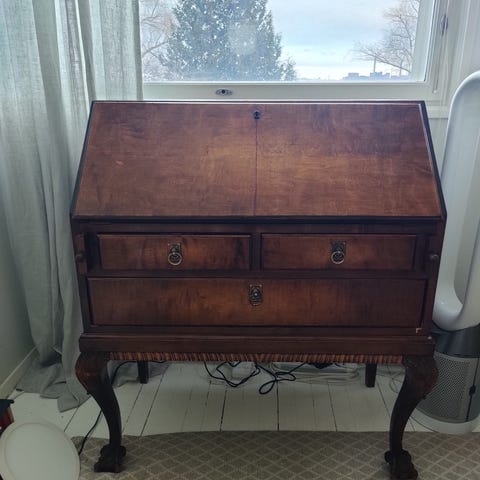 Klaffilipasto hyvänä käytettynä. Lipasto seisoo irrotettavan jalustan päällä — jalustan voi halutessaan poistaa ja asentaa omat jalat. Myös ilman jalustaa erittäin tukeva.