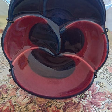Myydään keräilijöiden rakastama klassikko, Birger Kaipiaisen suunnittelema ja Arabian valmistama keraaminen viola-seinälautanen. Tämä yksilö on väritykseltään upea koboltinsininen, jossa on syvän musta keskus. Lasitteen hehku on erinomainen, ja väriyhdistemä on yksi sarjan arvostetuimmista ja ajattomimmista. Erittäin hieno ja kirkas lasite on säilynyt upeasti. Pohjassa selkeät leimat:viola 1967, Arabia finland kruunuleima sekä KAIPIAINEN invenit. Mukana tulee tukeva jousikiinnitteinen seinäripustin, jolla lautanen on helppo ja turvallinen asettaa seinälle. Korkeus 15cm