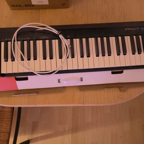 Novation Nocturn 49 midi keyboard ja M-AUDIO sustain pedaali.