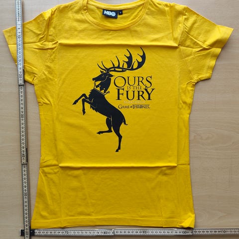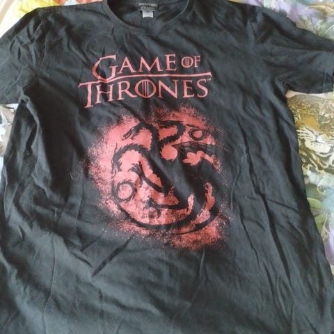 Musta "Girlie"-mallinen t-paita, jossa etupuolella GoT-printti.