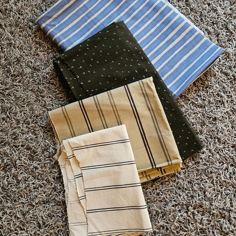 Kuvassa olevat kangaspalat ompeluksiin. Ylhäältä: