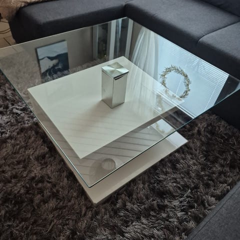 Valkoinen siisti Ikea sohvapöytä lasilla uuteen kotiin 78x78cm, korkeus 39cm. Lasin alle halutessaan voi laittaa mitä mieleen tuleekin, jos näyttää "tylsältä". Nouto Mustikkahaka Heinola
