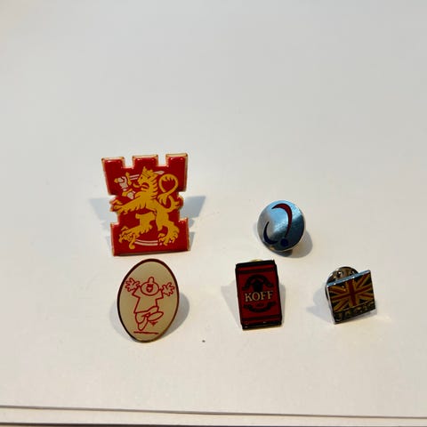 8 kpl pinssejä. Myynnissä koko kokoelma - katso muut ilmoitukset. Pinssit ovat 90- ja 2000 luvun alusta.