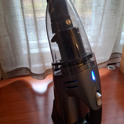 Siemens IQ 300 -pölynimuri. Johtoon liitettävä, pölypussillinen malli, jossa säätönuppi imutehon valintaan.