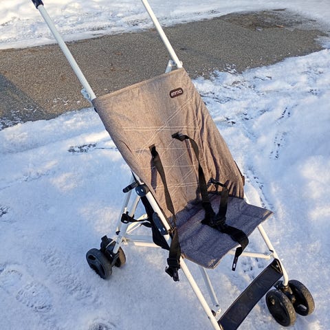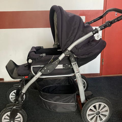 Pienet näppärät matkarattaat. Selkänojaa saa säädettyä, aurinkosuoja ja pieni alatorin tavaroille. Tahraa turvakaaressa, näkyy kuvassa.