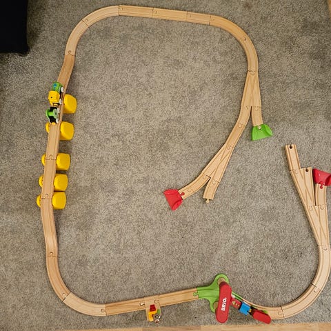 Mukana myös muutama merkitön junaradan osa ja puisia palikoita +pari Ikean junaa.