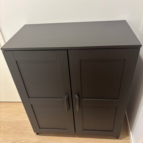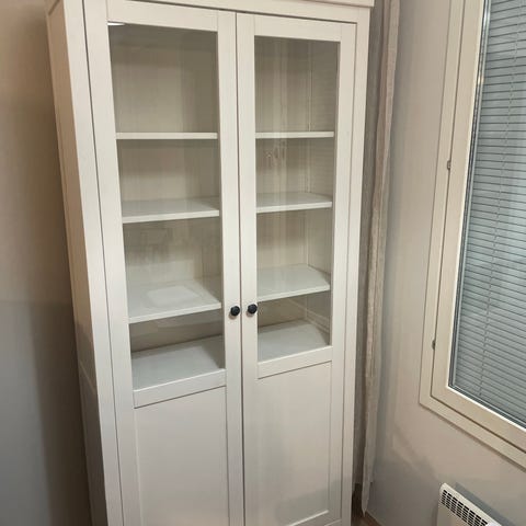 Myynnissä Ikean BRIMNES- sarjan kaappi. Lasilevyjä mahdollisuus siirtää. Hyvässä kunnossa lukuunottamatta, että vähän lohkeillut maalia reunoista (näkyy viimeisestä kuvasta). Nouto Tapiolasta.