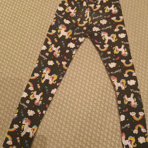 Leopardikuvioiset leggarit, koko 134 cm. Pesunukkaa on, mutta ehjät ja siistit. Pituus noin 72 cm.