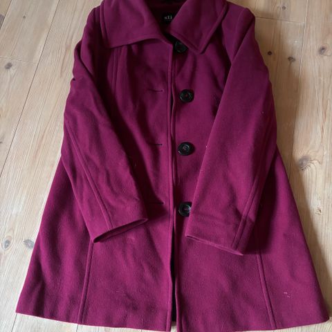 Punainen duffelitakki S kokoiselle naiselle tai tytölle. Vetoketju ja duffelilenkit. Villasekoite.Hinta 5 euroa. Kaupat Tampereen keskusta Metso kirjasto