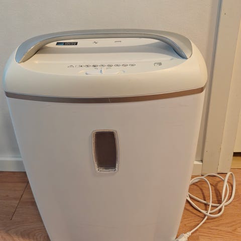 Hienosti toimiva paperisilppuri. Oikein siisti, mutta pienen pieni naarmu on silppurin 'päällä'.