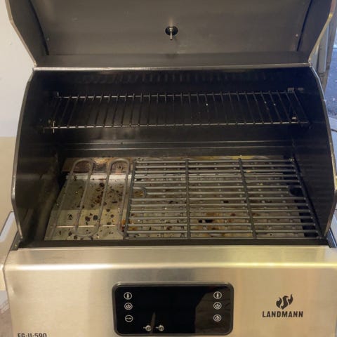 Grillissä on selkeää käytön jälkeä ja ruostetta säilytystilan pohjassa, vaatii puhdistuksen. Mukana ei ole kaasupulloa.