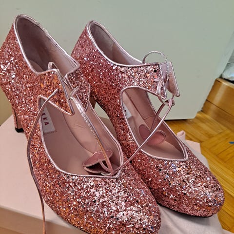 Minna Parikka Raquel shampagne / kultaiset glitter korkokengät, koko 40. Hp 240€