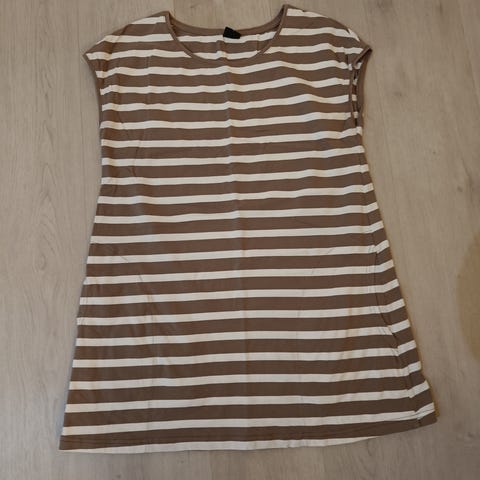 Nanso naisten tunika taskuilla. koko L, kai- kai mitta, noin 55cm. mustavalkoisilla raidoilla. Materiaalina 95 % puuvilla, 5 % elastaani. Pitkähihainen, pyöreä pääntie ja hieman pidempi malli. Marimekko tyylinen. Sopii arkipaidaksi tai rennoksi yläosaksi esimerkiksi housujen tai leggingsien kanssa. Nouto Tuusula ( tai Asola, Vantaa) postit 8,90€ tai toridiili.