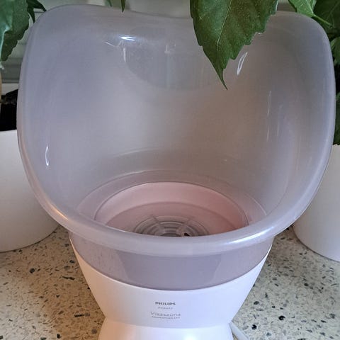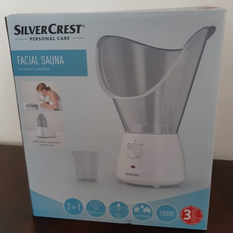 Vähälle käytölle jäänyt kasvosauna, höyryhengityslaite, ihonhoitolaite.