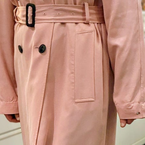 Tommy Hilfiger pitkä villasekoitetakki naisille. Koko 36. Väri voimakas pinkki. Materiaali villa (puolet), polyesteri ja viskoosi.
