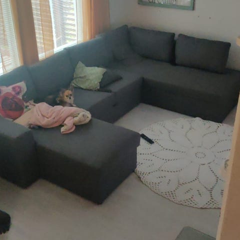 Vähällä käytöllä ollut hyväkuntoinen sohva. Ei käytönjälkiä. Taloudessa koira, mutta se ei ole sohvalla ollut.