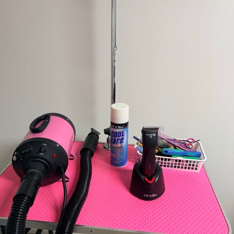 Verkkovirralla toimiva 2-tehoinen koiratrimmeri / trimmauskone, jossa 2mm (9) terä ja mukana 9 ohjauskampaa (3mm, 2x 5mm, 2x 8mm, 10mm, 11mm, 13mm, 14mm).