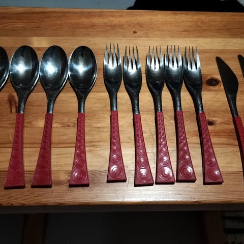 Myydään Nanny Stillin suunnittelemia Mango aterimia.