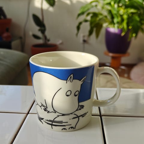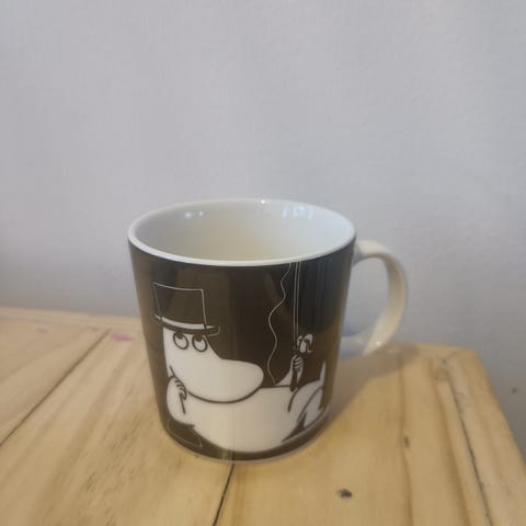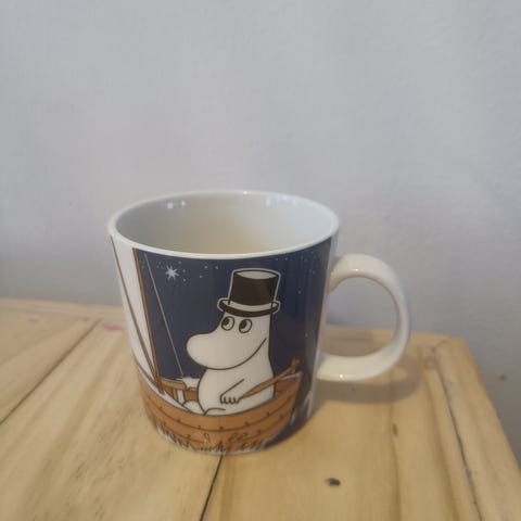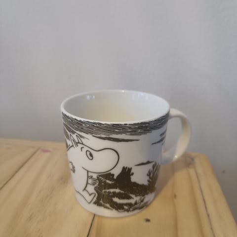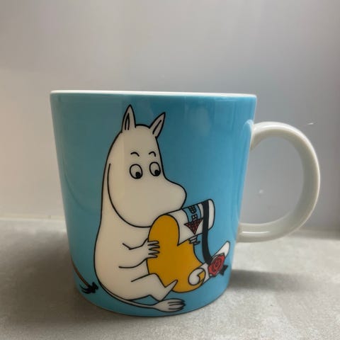 Myynnissä tuotannosta poistunut Arabian muumimuki Muumipeikko jäällä