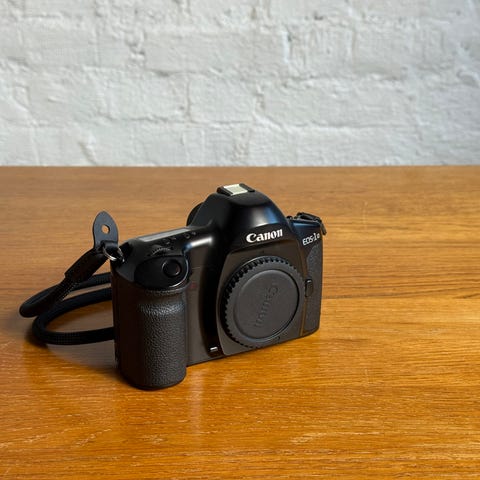 Siistikuntoinen Canon EOS-1 filmirunko. Hyvin pientä kosmeettista kulumaa ja käytönjälkeä pinnoissa, mutta toiminnallisesti täysin ehjä. Markkinoiden ensimmäinen täysin elektroninen objektiivikiinnitys. Etsinkumi heikosti kiinni.