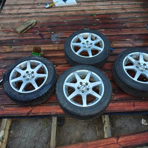 Kesärenkaat siisteillä 15" vanteilla. Paistoleima 2021. Kumit koossa 195/65r15. Pintaa hyvin ja kuluneet tasaisesti.